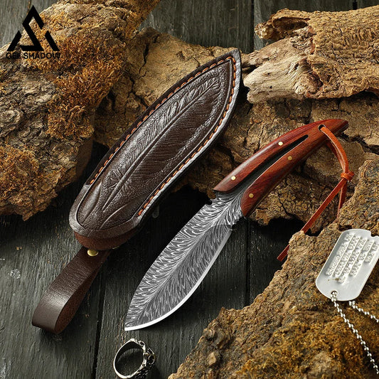 Spirit Feather Stright Knife With Leather Sheath-GS125