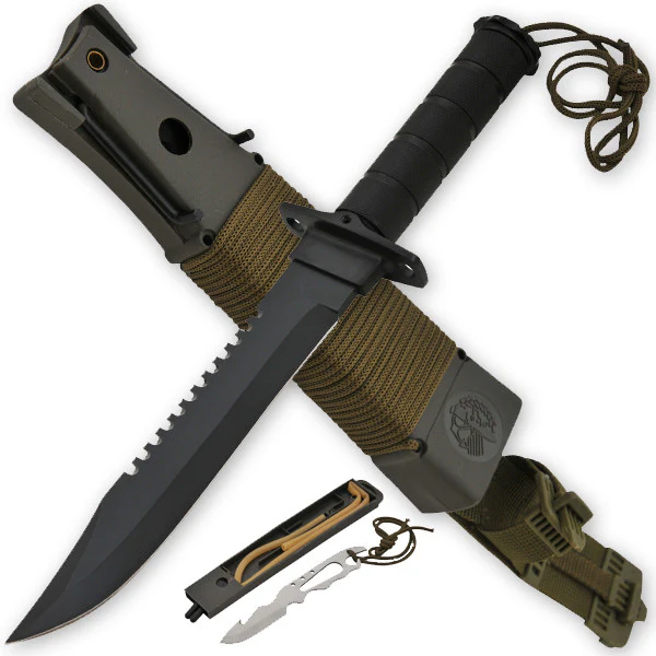 Large Hunting Knife Bowie Sharp Fixed Blade Camping Military Outdoor Survival Set-GS87